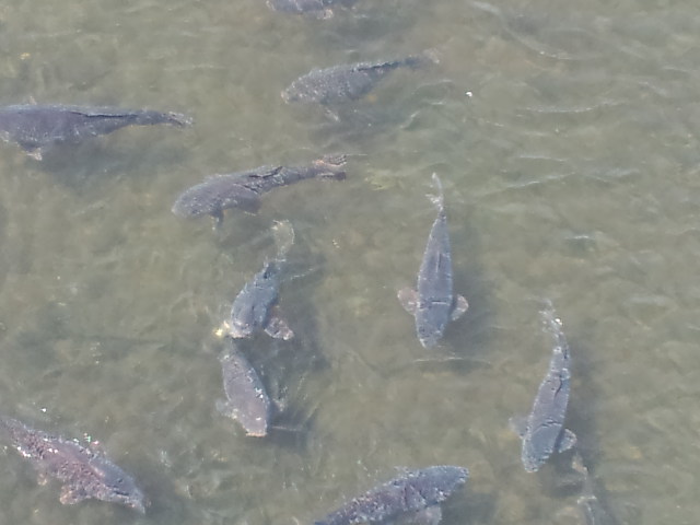 河辺に降りたらでっかい鯉と亀がウヨウヨいた。