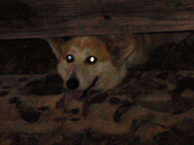 ☆キャンプメンバー、コーギーのすず♪人懐っこい犬でめっちゃ可愛かった!!夜寝る時に何故か建物の下に引っ込んでしまいました。