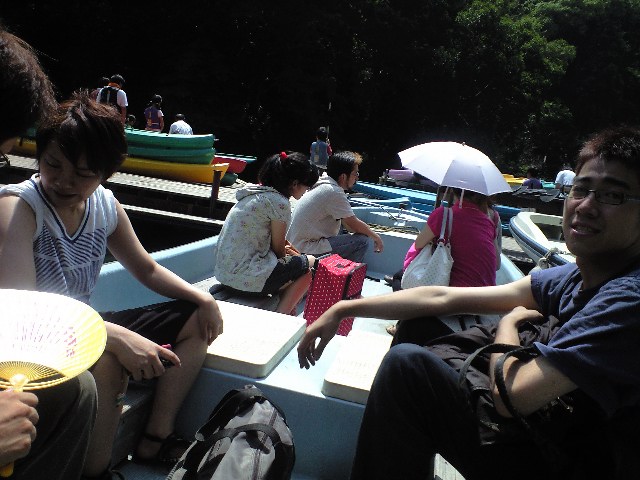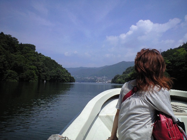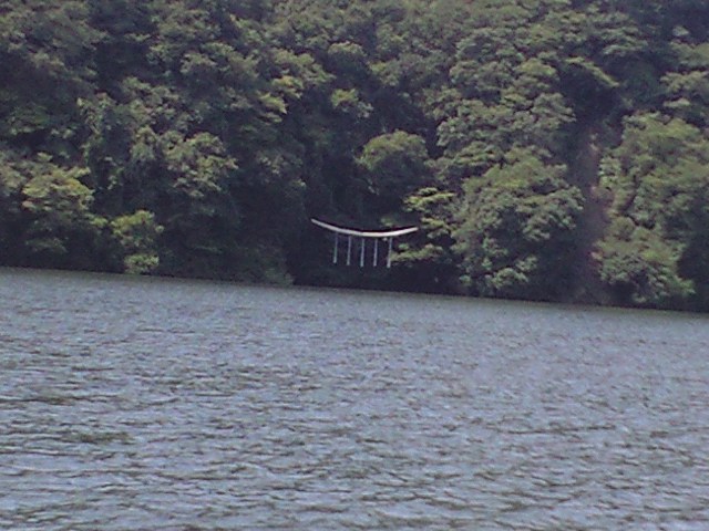 ☆こんもりした森の中に神社らしきものが…。注連縄だからお寺かな?でも湖の中にぽっかり出てきたから、きっと湖の御神体だろうね。1日楽しませて頂きましたとボートの上からお参り。