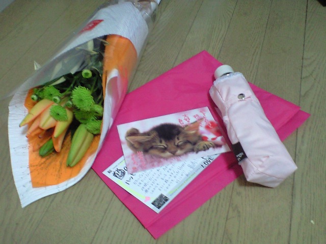 2人からのプレゼントはあにきは女優ミラー(ライトが点く鏡)、私はピンクの折り畳み傘を貰いました(この前の嵐で壊したから…雨日兼用です♪)