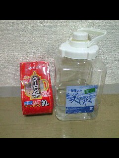 んで、烏龍茶を出すための水も買うと高いし水道水はイヤだし、と言うわけでサミットの無料水を利用してます。いや、便利だよね!容器(4L=500円)を買っとけば後はいつでも無料。自転車使えば運ぶのも楽だしね。沸かしたお湯でもあんまり飲む気にはならないのだ…。