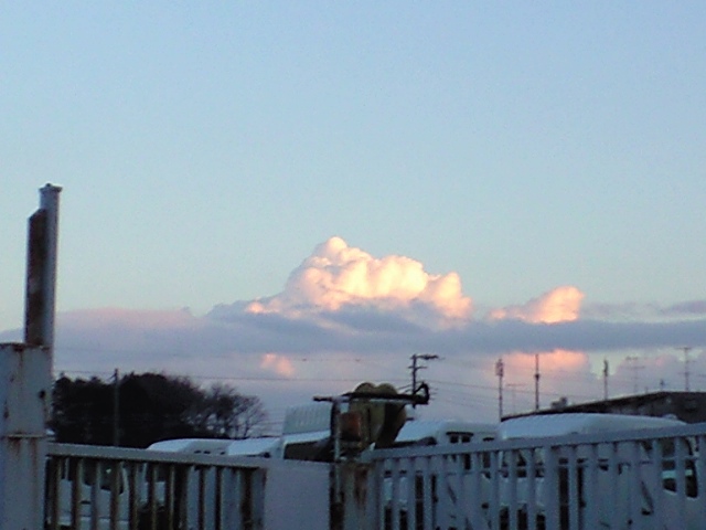 帰り道、冬なのに夕陽に照らされた入道雲を見ました。