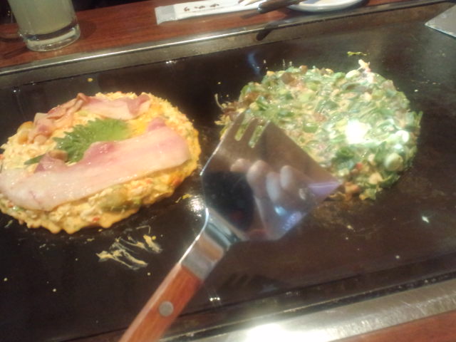 ☆ネギ焼きとキムチ焼き、トンペイ焼きとビーーーール!!このあとレッスンだけどビール!!おいしかったあぁ(笑)