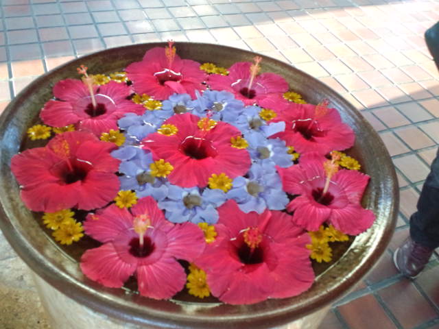 ホテルは「東急リゾート」水の上に浮かんだハイビスカス、可愛かった。