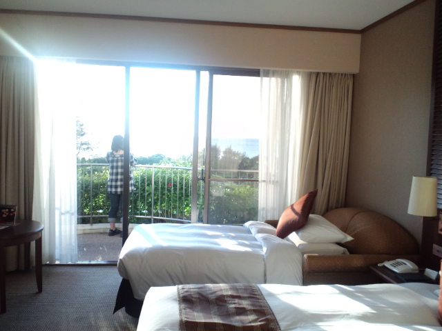 このホテルはどこの部屋からも海を眺める事が出来るみたいで、しかもラッキーなことに角部屋でした。