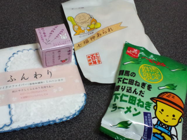 写真はぽちに貰ったプレゼントとぶちゅもに貰ったお土産☆下仁田ネギて…(笑)