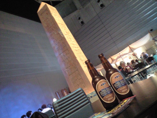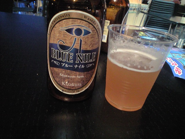 その後、展示会場内のカフェに入ってブルーナイルビールで乾杯。
