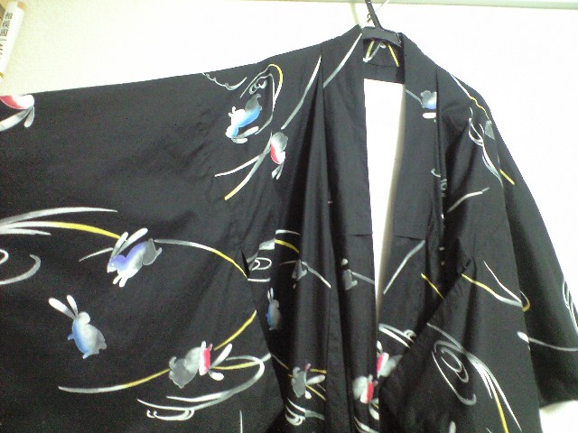 帰ってきてからはずっと明日の為に浴衣の手入れ。もぅ新しいの出す気力が無かったので、この前と一緒の黒ウサギ。
