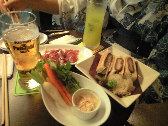 浴衣を着ていた事もあって、外人に写真を撮られたりしながらいつもの語らい。