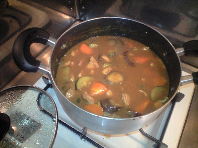 なので本日はナスとズッキーニとチキンのカレー♪(残り野菜だから中身微妙…(笑))