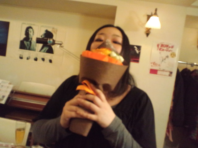 そして9時過ぎ、仕事終わりに一杯!とやってきた聖哉さんがお花を買ってきてくれました☆