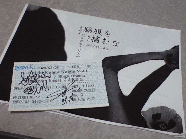 次のバンドの準備中に出て来た2人とちょっとだけお話して、恒例となりつつあるチケットにサインを貰いました。