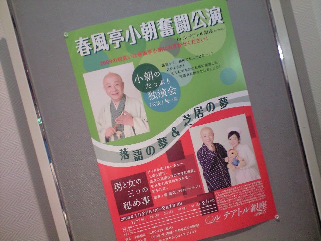 小朝師匠と加護亜依ちゃんの2人芝居、3本オムニバスと小朝師匠の落語。