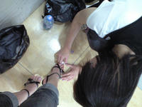 トイレ前で藤色のペディキュアを塗って貰う。軽く羞恥プレイ?(笑)